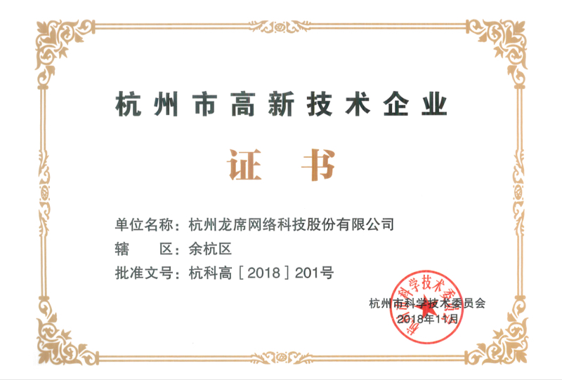 公司先后被評為杭州市雛鷹企業(yè)、軟件企業(yè)、浙江省科技型中小企業(yè)、國家科技型中小企業(yè)、杭州市高新技術(shù)企業(yè)、國家高新技術(shù)企業(yè)、